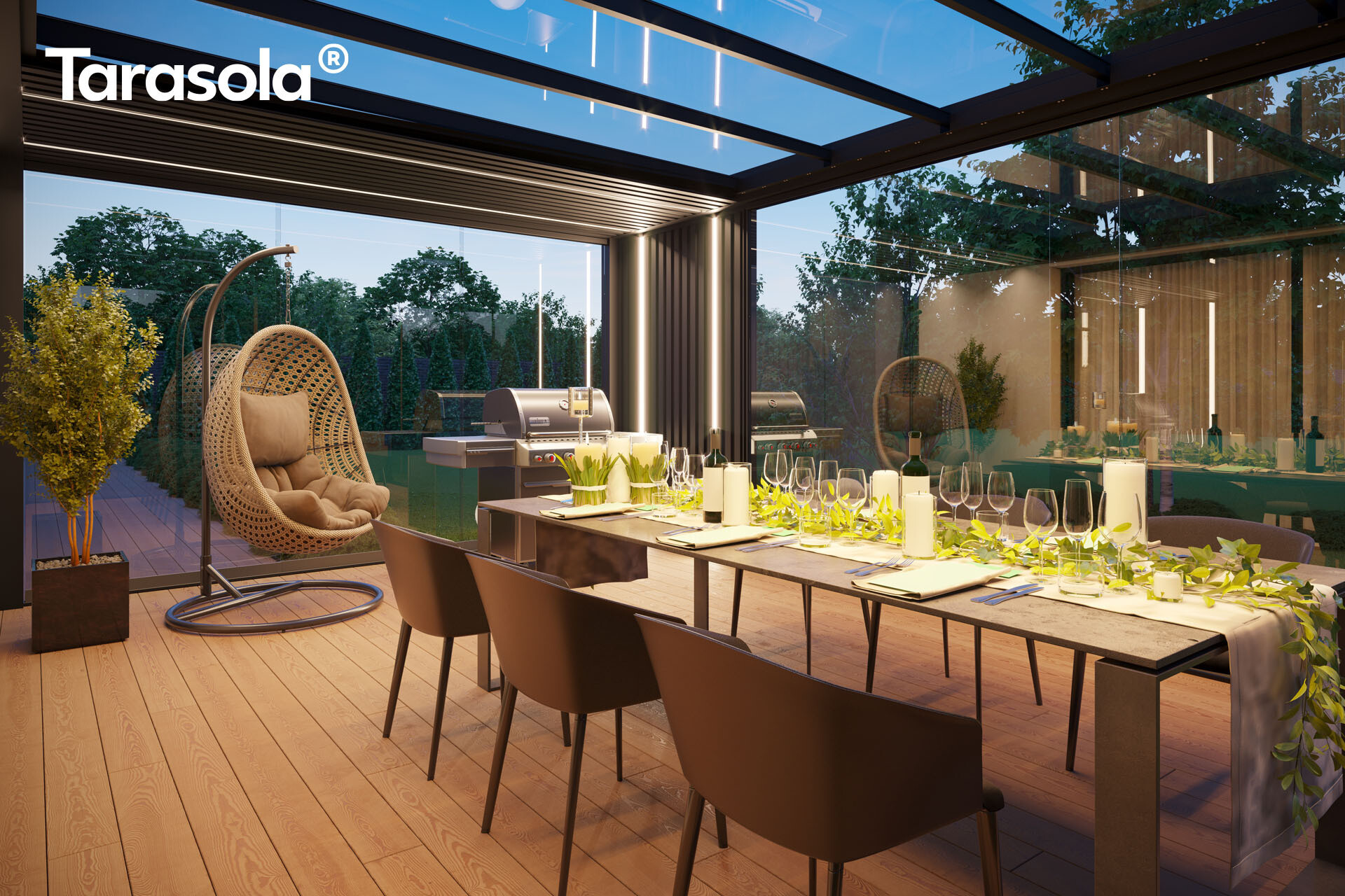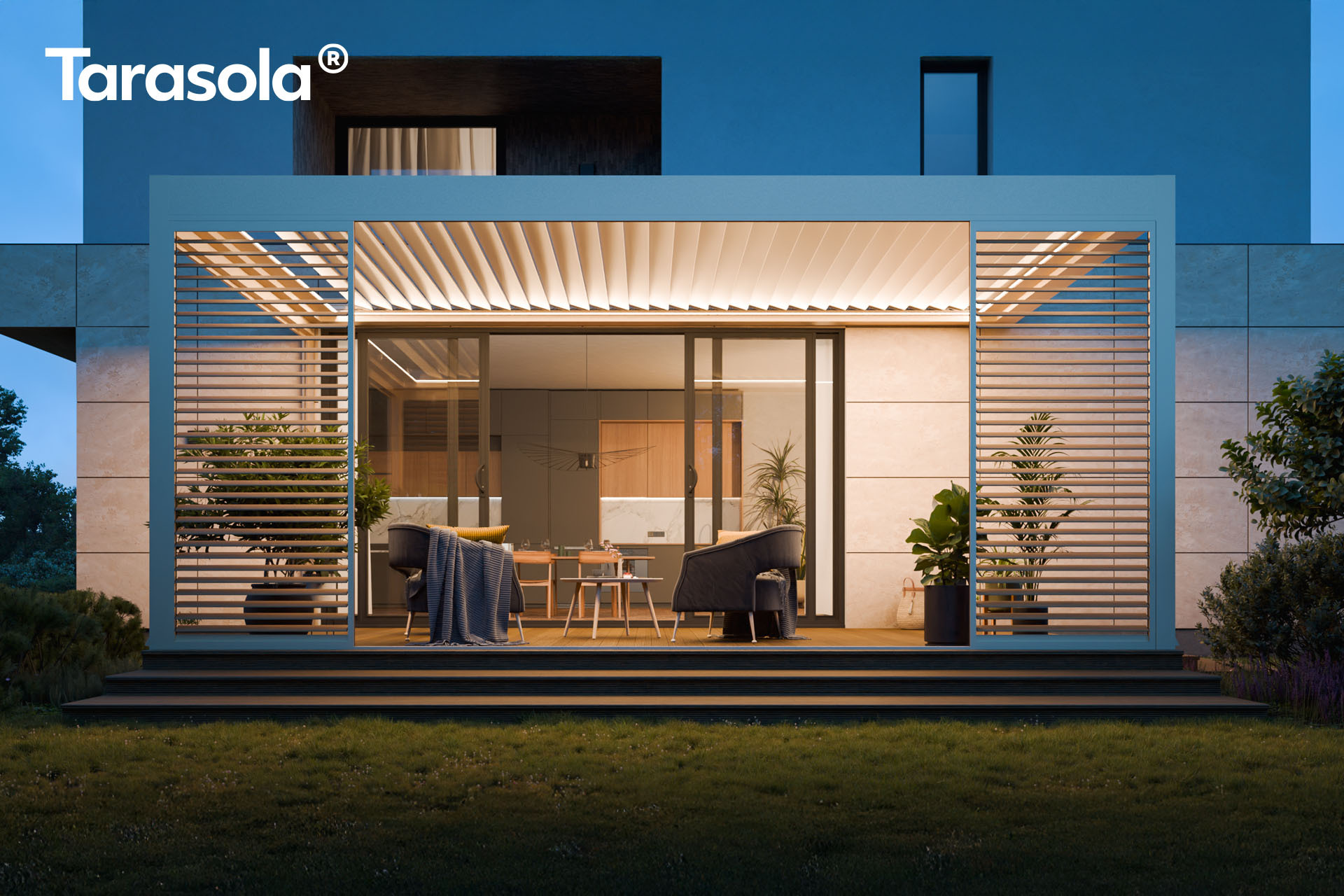 Jeżeli dany model oferuje możliwość uzupełnienia go o dodatkowe wyposażenie, to można to zrobić w dowolnym momencie. Wyjątkiem jest tu zintegrowane z zadaszeniem oświetlenie LED. Jest ono wprawiane w konstrukcję. Z tego względu musi być zamówione razem z zadaszeniem i nie ma możliwości zainstalowania go po zamontowaniu konstrukcji. Warto poinformować handlowca o tym, że późniejsze doposażenie tarasoli jest brane pod uwagę. W przypadku promienników ciepła, zamówienie ich razem z tarasolą umożliwia ukrycie przewodów w konstrukcji; w innym przypadku instalacja będzie poprowadzona na zewnątrz.